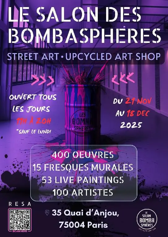 Du 21 novembre au 18 décembre 2025, l’ancien Cours Florent, devient l’écrin d’un salon artistique hors norme : le Salon des Bombasphères.