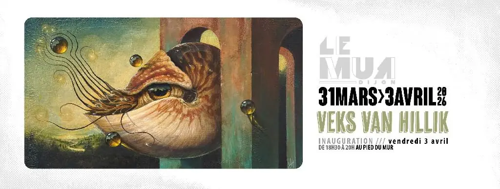 Artiste français né en 1988 et basé à Toulouse, VEKS VAN HILLIK navigue entre peinture, muralisme et tatouage. Son style se distingue par un clair-obscur ultra précis, graphite, charbon et acrylique, qui sculpte la lumière comme une gravure et fait monter l’image depuis le noir. Il y déploie un bestiaire hybride, onirique et surréaliste : chimères, faune et flore métamorphosées, entre héritage des maîtres classiques (Brueghel, Goya) et résonances contemporaines.