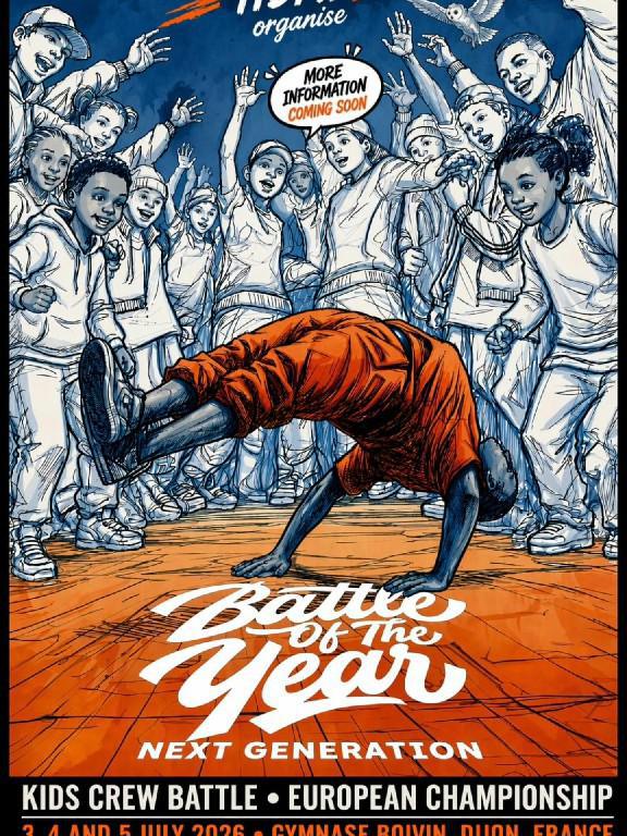 Organisé par la HDMI Team de Dijon, le Battle of the Year — Next Generation réunit les jeunes crews de breaking au Gymnase Jean-Marc Boivin du 3 au 5 juillet 2026.